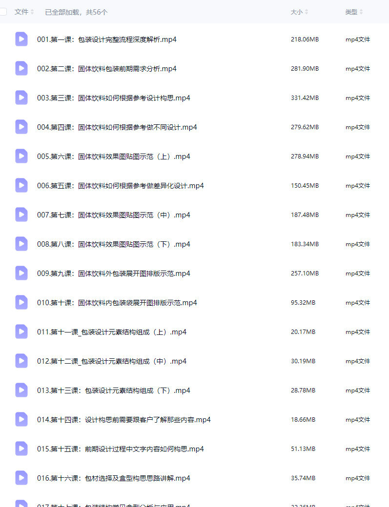 潘红旭包装设计基础版教程2023【画质不错只有视频】 2024-07-16 平面设计 资源下载下载价格1 金币终身VIP免费立即购买如果充值购买遇到问题可以先联系客服的 qq:3460825861 如果下载链接失效请找客服补链或者留言 另外说明iphone用户请不要使用safari浏览器请用其他的浏览器 0 平面课程
