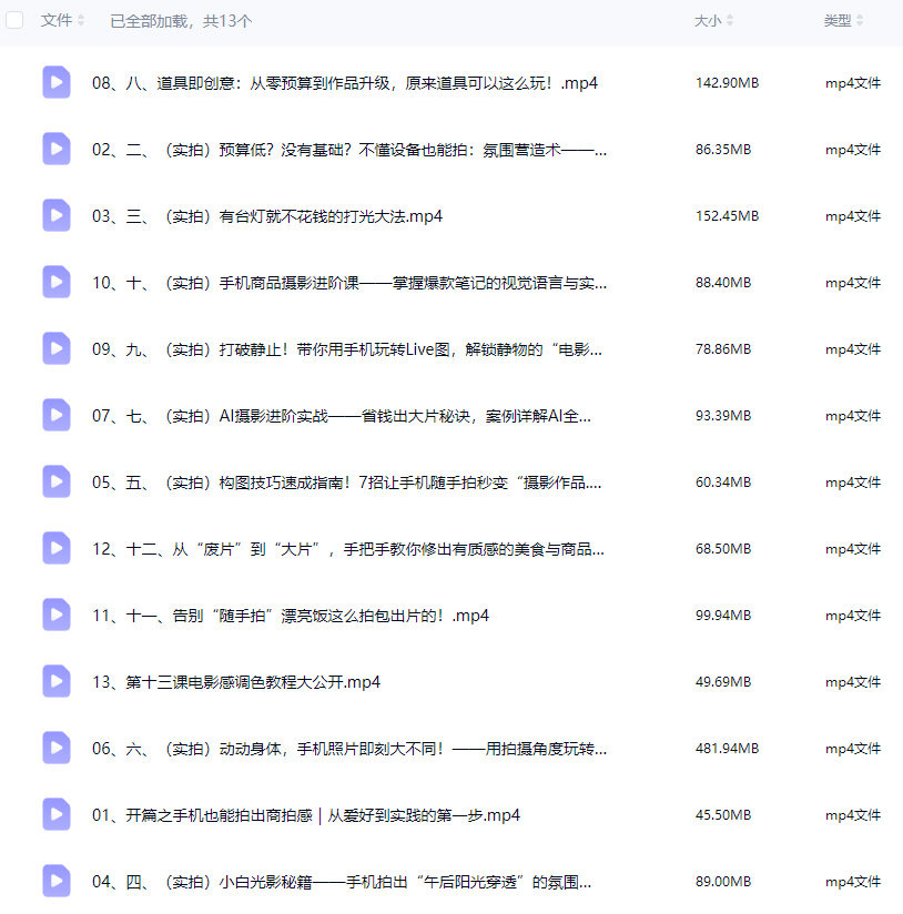 金大力能变现的手机静物摄影系统课2025【画质不错只有视频】 11小时前 摄影课程 资源下载下载价格2 金币终身VIP免费立即购买如果充值购买遇到问题可以先联系客服的 qq:3460825861 如果下载链接失效请找客服补链或者留言 另外说明iphone用户请不要使用safari浏览器请用其他的浏览器 0