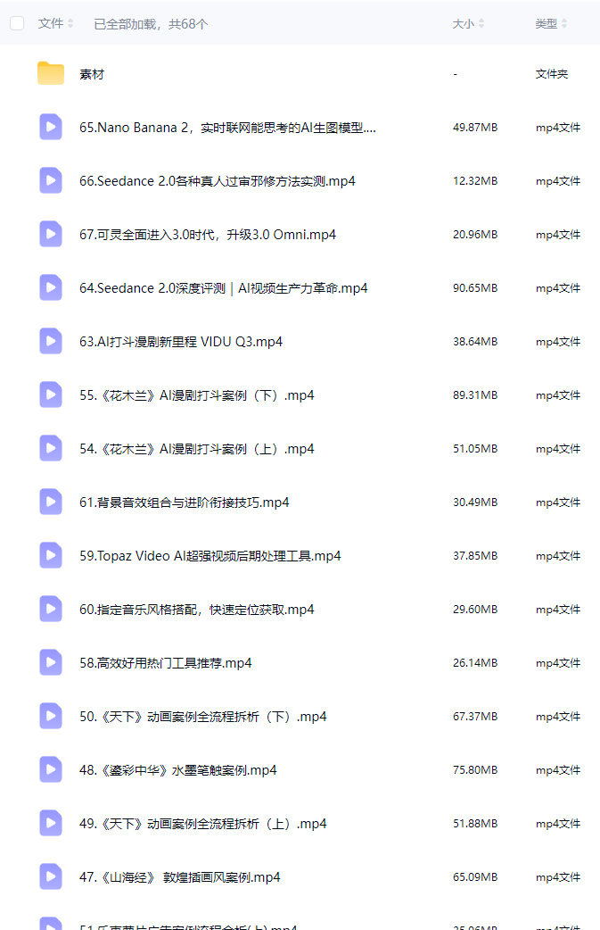 李辰全面掌握AI视频2025【画质高清有大部分素材】 2026-01-01 AIGC课程 【更新说明】目前是1-67课都有,课程涉及即梦AI、可灵AI 资源下载下载价格2 金币终身VIP免费立即购买如果充值购买遇到问题可以先联系客服的 qq:3460825861 如果下载链接失效请找客服补链或者留言 另外说明iphone用户请不要使用safari浏览器请用其他的浏览器 39