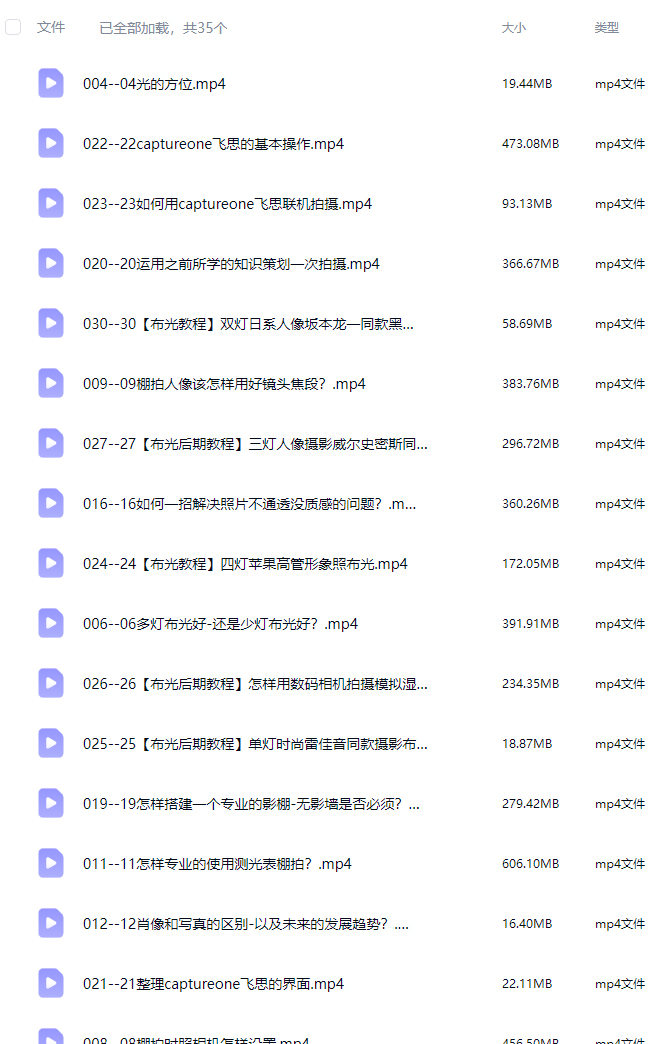 与光同舞诺亚摄影专业棚拍人像零基础入门视频教程【画质高清只有视频】 4小时前 摄影课程 资源下载下载价格2 金币终身VIP免费立即购买如果充值购买遇到问题可以先联系客服的 qq:3460825861 如果下载链接失效请找客服补链或者留言 另外说明iphone用户请不要使用safari浏览器请用其他的浏览器 2