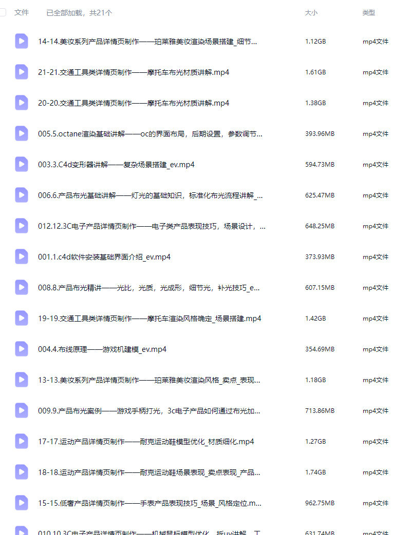 C4D&OC产品商业渲染2024春季班【画质高清只有视频】 9小时前 C4D课程 资源下载下载价格2 金币终身VIP免费立即购买如果充值购买遇到问题可以先联系客服的 qq:3460825861 如果下载链接失效请找客服补链或者留言 另外说明iphone用户请不要使用safari浏览器请用其他的浏览器 0 C4D教程